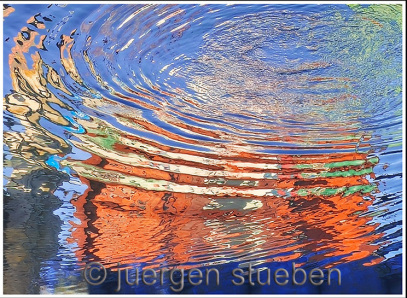 Spiegelung in bewegtem Wasser.